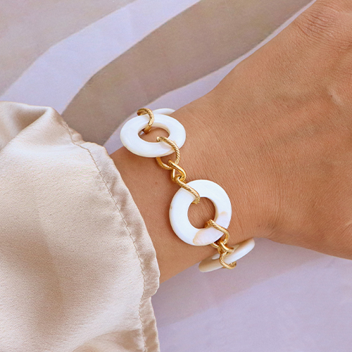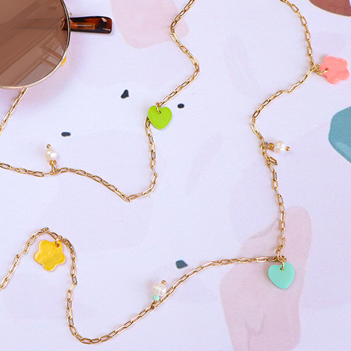 With our new collection of shell beads and charms, you can design summery, colourful jewellery. Include the shells in an elegant glasses chain in combination with macramé thread, freshwater pearls, stainless steel beads and glasses chain-ends. You can use link chains to make chains and bracelets. The shell beads and charms can be hung directly onto the links using crimp rings; this combination will ensure that the coloured shell beads are charms stand out beautifully!