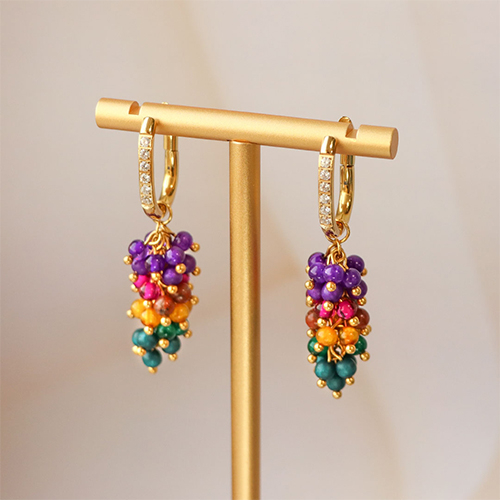 Polaris Elements beads look great with freshwater pearls, natural stone beads disc and stainless steel beads. Combine these items with a belcher chain to design necklaces. You can also use head pins and beads to make your own charms. Attach 6 charms to a jump ring and divide the charms into 2. Hang another split ring with 4 charms in the middle and continue until you have 1 charm in the middle. You now have a bunch of charms to hang on to an earring!