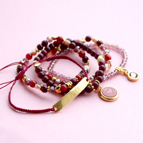 When you think about the colours red, aubergine and bordeaux, you think about love! That's why we made this cute jewellery set especially for Valentine's Day. In this beautiful set we used 6mm round Polaris Elements beads. We also used top faceted beads, freshwater pearls and nice DQ metal charms in gold. The Swarovski flatback chaton and Polaris Elements cabochon with laser heart make this jewellery set look even more lovely. What will you create for your Valentine?