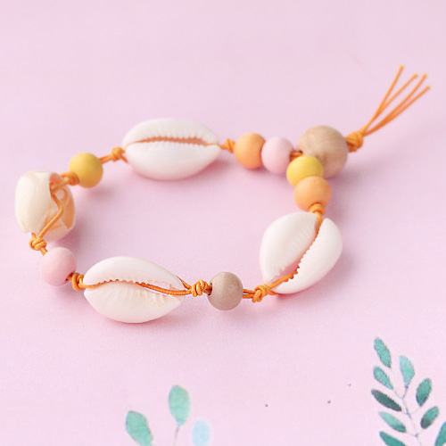Beach jewellery with wooden beads, shells and DQ European metal