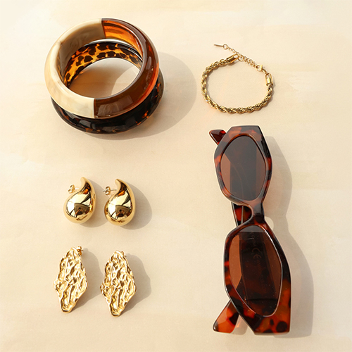 Bracelets resin with leopard print Gold-Transparent Light Amber Brown-Black