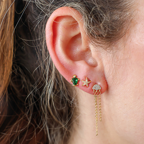 • Brass TQ metal earrings / earpins turtle Gold-Green