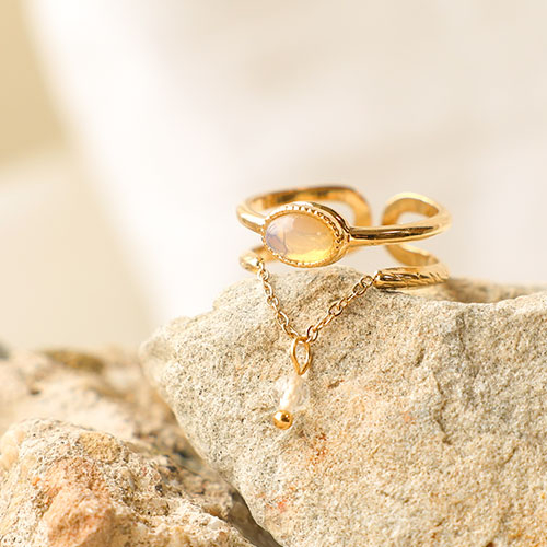 Stainless steel rings with natural stone Gold-Light Pink
