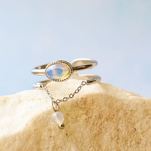 Elegant stainless steel rings with natural stone