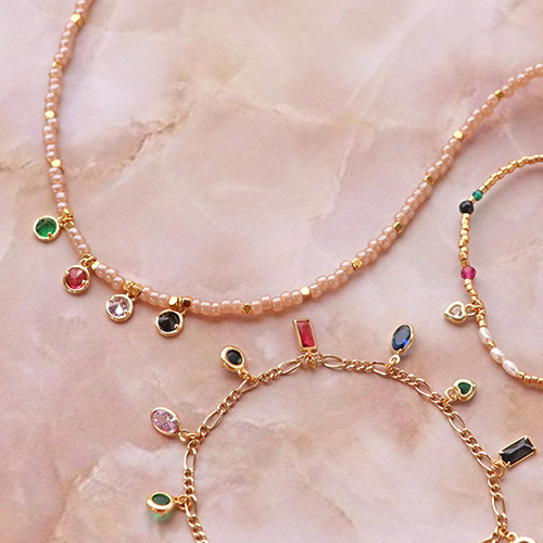 Use these beautiful small crystal glass charms and connectors in all your jewellery. Attach them for example to a colourful zirconia earring or create a bracelet with a belcher chain on which you attach the charms with a jump ring. Use seed beads and elastic cord to design a beautiful ring and embellish the ring with a charm. Create a necklace with seed beads and crystal glass charms using a metal wire so the necklace lays perfectly around your neck.