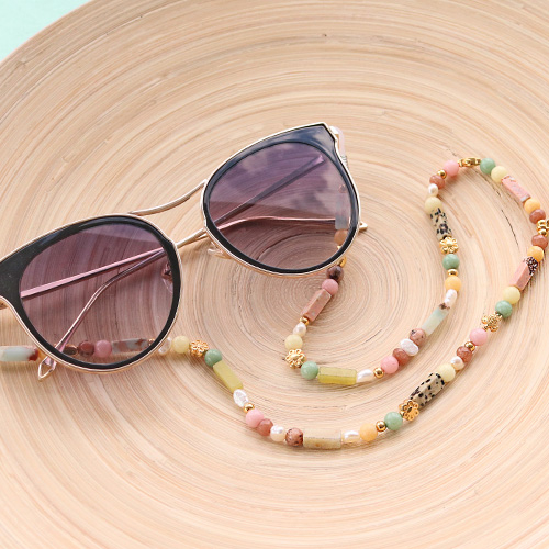 Go and create the most amazing jewellery and accessories with our new collection tubes natural stone beads. We’ve created subtle bracelets with a matching necklace and an amazing, trendy sunglasses cord. We threaded the bracelets onto elastic beading cord and combined the tubes natural stone beads with our round shaped natural stone beads, freshwater pearls and DQ European metal beads. At last decorate the bracelets with a crystal glass charm. The matching necklace is made with ball chain and a lobster clasp. The necklace is combined with the same beads threaded on an eyepin. At last we created an easy to make sunglasses cord which is definitely worth the effort! Thread the tube shaped natural stone beads, DQ European metal beads and freshwater pearls playfully onto elastic beading cord, end with two glasses cord ends and your super trendy accessory is done!