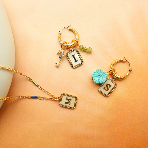• Stainless steel charm shell letter J Gold-White (natural colour)