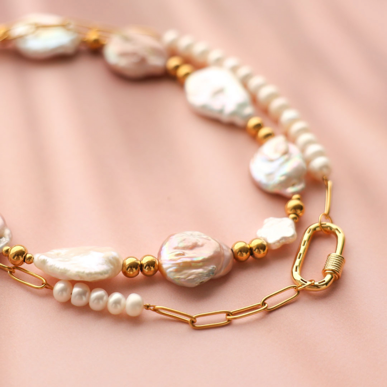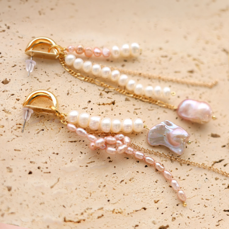 Discover our new collection of freshwater pearls. These pearls come in various shapes and elegant colours and are ideal for designing timeless jewellery. Work them into statement chokers and various asymmetrical earrings for a trendy collection