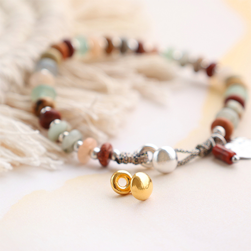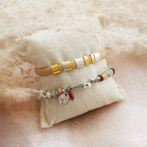 Use these components to design jewellery that suits a natural and indigenous style! Choose elastic Ibiza ribbon that looks beautiful with the sliders from this collection and close the bracelets with a DQ smart bead stopper. Or thread a bracelet on metallic macramé cord and select natural stone beads in a variety of colours that can be alternated with DQ metal beads. Use the DQ safety pin as a beautiful eye-catcher in a necklace made from belcher chain.