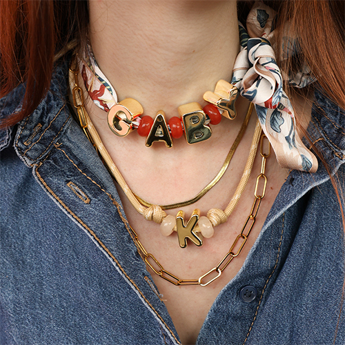 Feeling inspired to work with letters in your next jewellery collection? The new acrylic letter bead range comes in gold, silver or a colourful mix and combines effortlessly with our other acrylic bead shapes. Mix & match for playful, cheerful designs or clean, neutral sets.