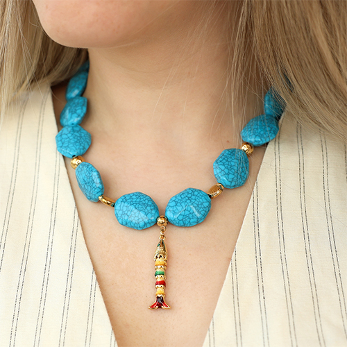 Eco-brass® metal charms fish Gold-Turquoise-White