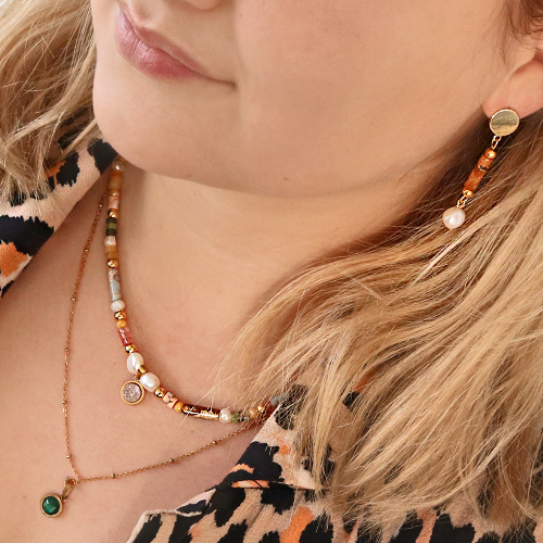 With the new collection of natural stone beads you can make fantastic jewellery. The collection contains disc- and tube-shaped beads that can be used for all kinds of different jewellery. We have made bracelets, necklaces and earrings with these beads. By combining the natural stone beads with round DQ European metal beads you will get a playful effect. We also combined the natural stone beads with freshwater pearls, because these beads are also a natural product and also have a beautiful glow. Thread the beads on metal wire for a great result.