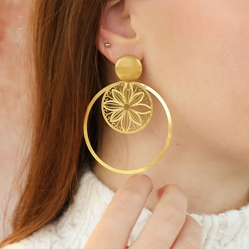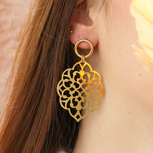 These large stainless steel charms and spacers are ideal for designing trendy bohemian-style statement earrings. Select various earrings from the collection such as stainless steel earrings, stainless steel ear studs and Crystal Glass earrings with an eyelet. Hang various charms and spacers on the earrings using split rings and remember: the bigger the better!