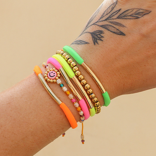 HomeInspirationInspirational SetsDesign bracelets with elastic Ibiza ribbon in neon colours