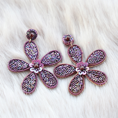 Trendy earrings / earpin with glass beads Gold-Mahogany Red-Mauve