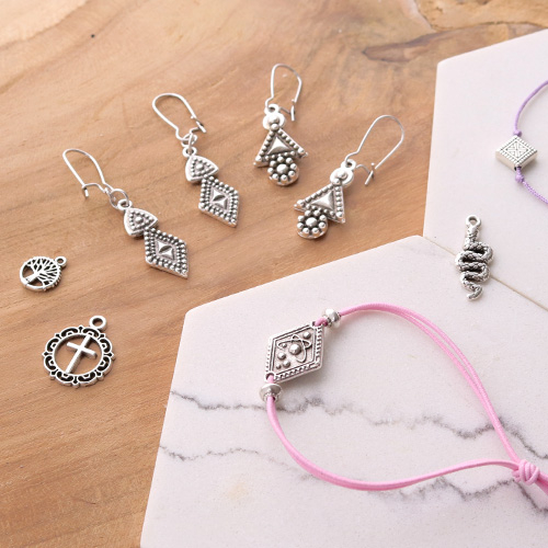 With Designer Quality European metal you can make multiple jewellery designs and accessories. Minimalist or statement jewellery, timeless or trendy, it’s all possible with this DQ European metal. We decided to go for a look with summery, light shades. We combined the Designer Quality European metal with trendy cord and maritime cord. Last but not least, we added a few charms to spice things up. For more inspiration check out our videos, in which we explain multiple techniques step by step.