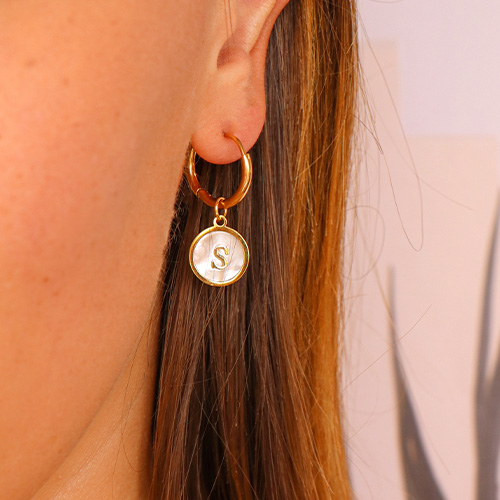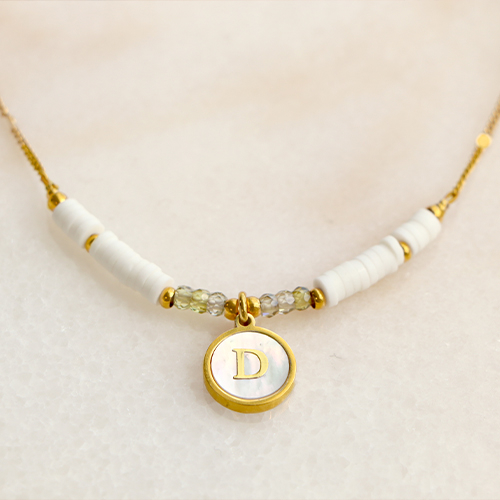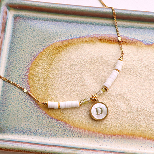 Stainless steel charms 12mm shell initial D White (natural colour)-Gold