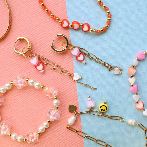 Have you spotted our new acrylic beads collection yet? You can shop them in an array of new colours and playful shapes like flowers and hearts. This series is perfect for creating playful bracelets, earrings, and pendants for bags or keys. Combine with our high-quality DQ beads, glass pearls, and ceramic smiley beads for an irresistible design!