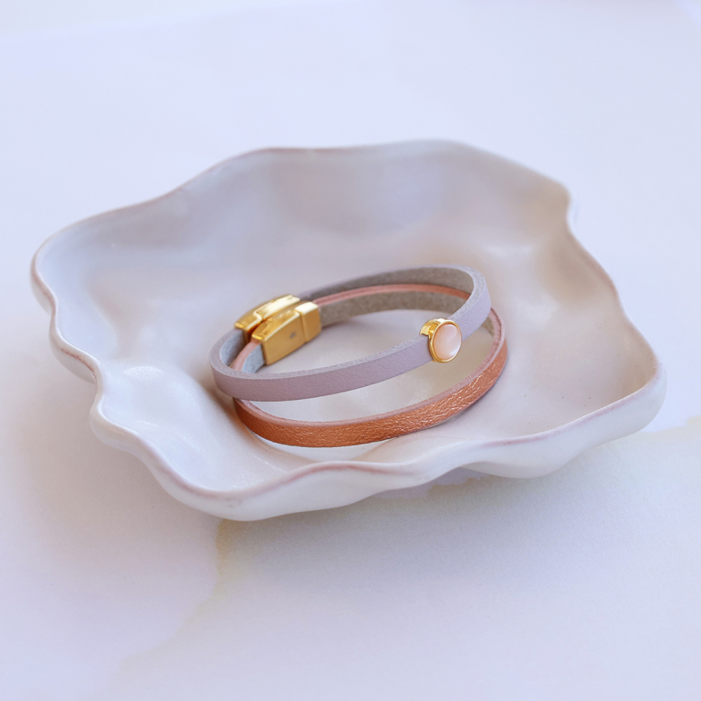 These beautiful clutches, purses and bags stripes are made of Italian leather. The purses are available in medium and small. Attach 5 and 10mm bag stripes to clutches or work them into bangle bracelets for elegant bangles.