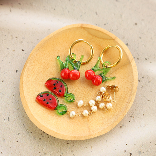 These glass charms fruit are handmade from high-quality glass. The charms look great on eye-catching earrings, on a necklace with freshwater pearls and glass beads rocailles or a matching bracelet. Do you already know what you will make with these charms?