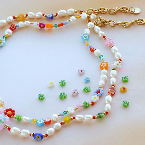 You can really use Millefiori beads in all your jewellery! In this collection you will find Millefiori beads in various colours and shapes, such as heart shape and flower shape. Combine the beads with different freshwater pearls to design a trendy summer collection!