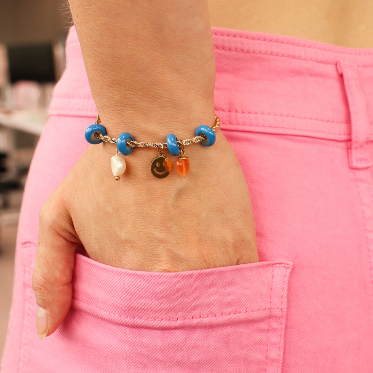 This new collection of smart stopper beads with enamel adds colour to your jewellery! Available in stunning shades such as red, pink, purple and blue. Combine them with trendy cord, elastic Ibiza ribbon, jasseron or macramé wire and finish with charms made of dq, stainless steel, natural stone or pearls. Design endless variations and make your bracelets extra special!