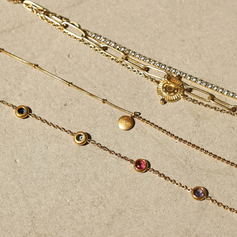 This collection of ready-made anklets and bracelets is a great addition to your summer collection. The bracelets and anklets are made of stainless steel, which makes them waterproof. They are also perfect to combine with homemade jewellery!