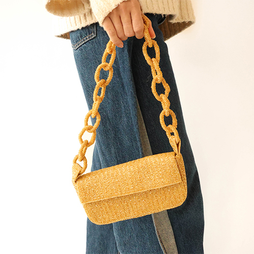 Handbag with glass beads Gold