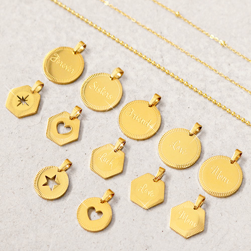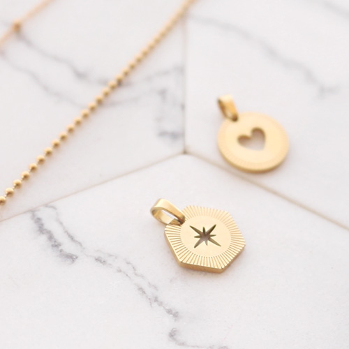 Make lots of combinations with new Mix & Match necklaces of stainless steel. The charms are easy to attach to the necklace, because of the eye on the pendant. The necklaces are available in multiple sizes. This way you can easily create a look with layered necklaces.
