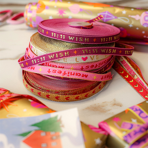 The festive month has started again, and what could be more fun than making your presents extra special? Get inspired and discover what you can do with ribbon with text. Whether you go for glitter, a nice print or a playful text, we have something for everyone! Get creative yourself and use our ribbons to make festive jewellery and hair accessories too. This way, you can add a unique and personal touch to your creations!