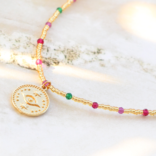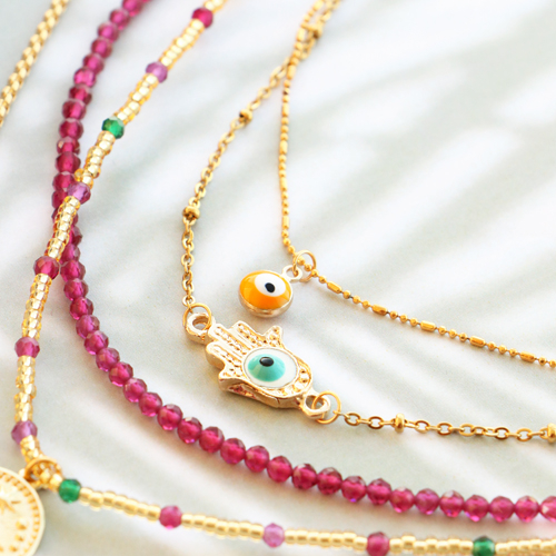 Need inspiration for making trendy jewellery with the evil eye? You're in the right place! We have already started and made a number of contemporary items. Make a stylish necklace with belcher chain for example and hang your favourite charm with the evil eye or all-seeing eye on it. Of course, you can also make cool minimalist earrings with these charms. First choose an earring finding or creole and attach the evil eye or all-seeing eye charm. Do you want to use some more colour? Use rocailles, top faceted beads and DQ European metal beads to thread a necklace. Use a pendant with an eye to attach a charm.