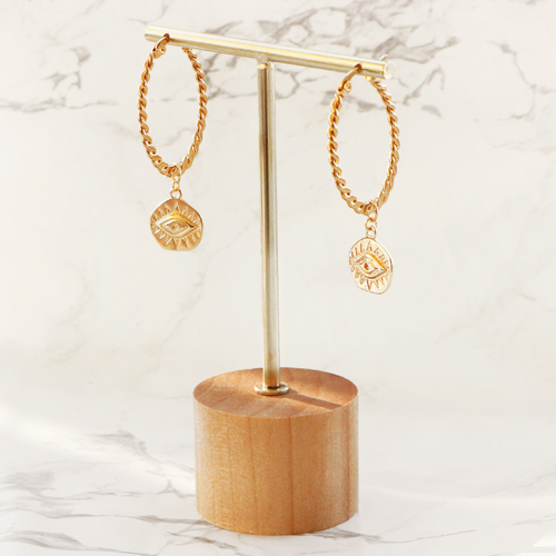 Jewellery display T-From with wooden standard for earrings (3pcs.) Natural (natural wood colour)-gold