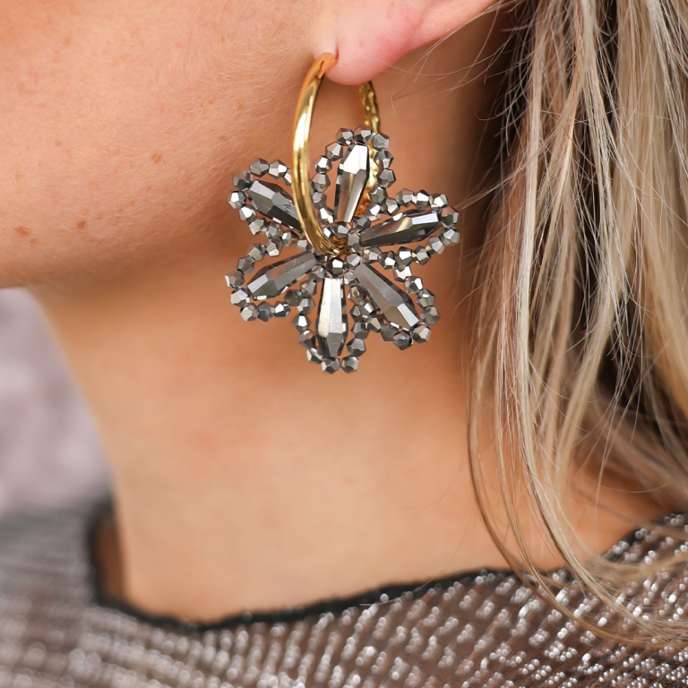 • Top Faceted charms flower Metallic Anthracite