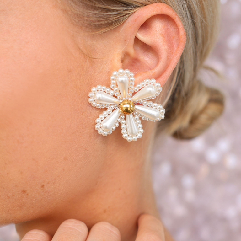 • Statement charms flower Pearl White