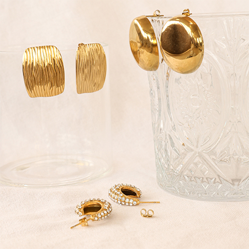 Meet our latest collection of bracelets and earrings! Made of stainless steel, these jewellery pieces do not discolour, are allergy-free and come in eye-catching statement shapes. Perfect for a sparkling collection!