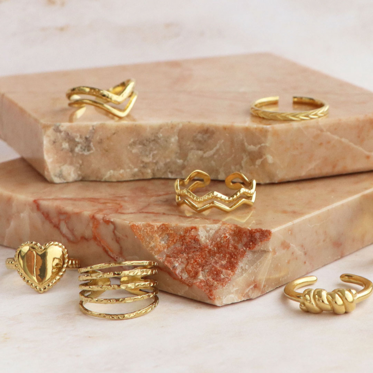 This new collection of stainless steel rings includes narrow rings but also trendy statement rings. All rings are available in gold and silver colours. Perfect to wear together or to combine with your self-made rings collection