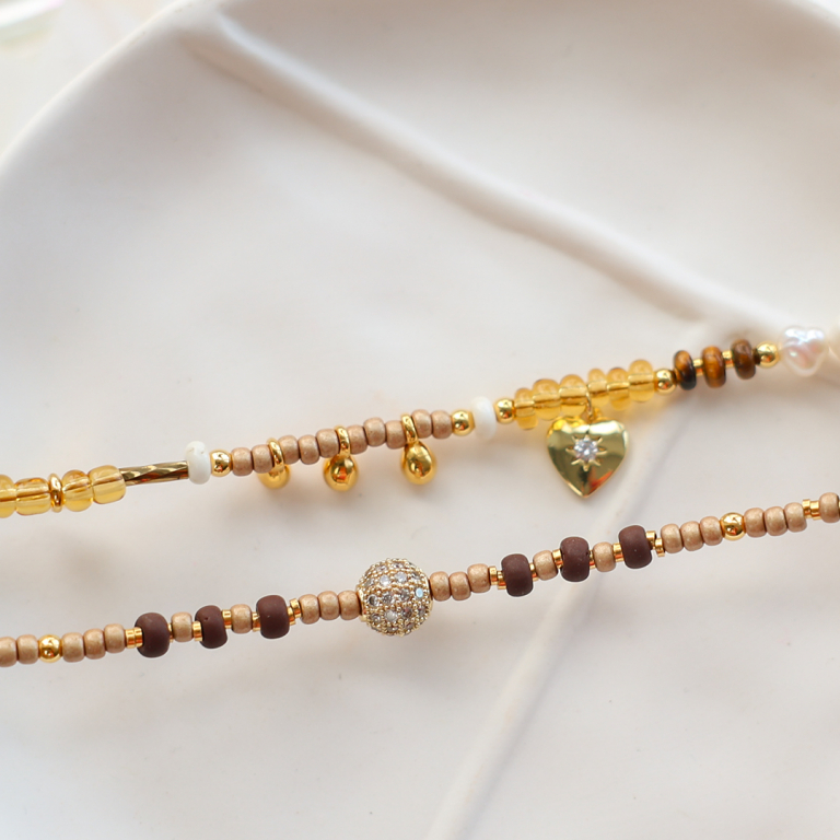 The new brass TQ metal collection includes beads and charms. The beads combine beautifully with freshwater pearls, natural stone beads and Miyuki seed beads to design elegant bracelets. Next to this, incorporate the charms and beads into trendy earrings.