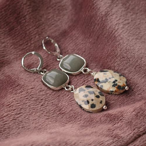 Natural stone beads Dalmatian Stone faceted oval Greige