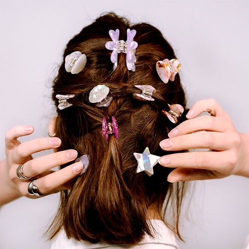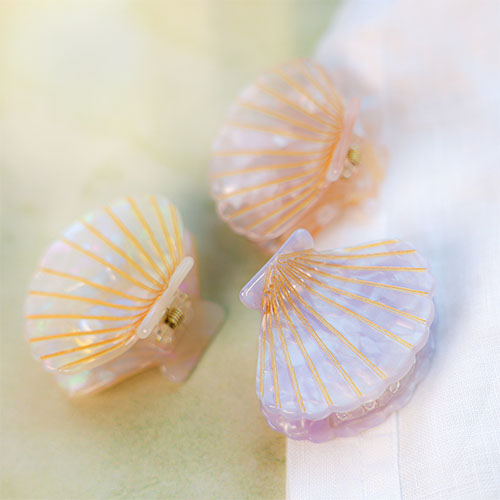 You really don't want to miss this new collection of hair clips and hair clamps. The hair clips and clamps are available in various cheerful colours and shapes, such as flowers, hearts and shells. A great addition to your summer collection, don't miss it!