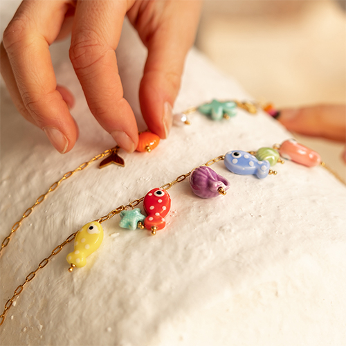 Stainless steel necklaces with charms fish Gold-Multicolour