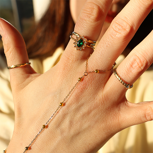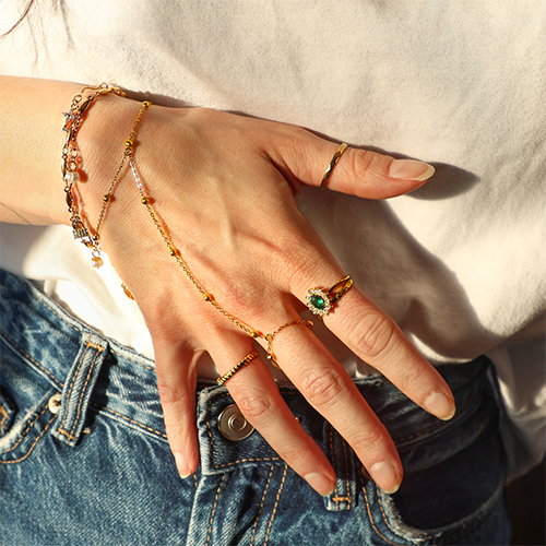 Stainless steel hand chain Gold-Crystal