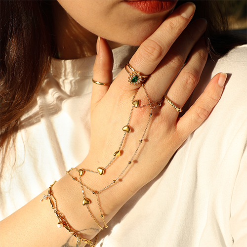 Stainless steel hand chain hearts Gold