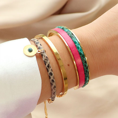 Design trendy bracelets by sticking flat cord into a bangle bracelet and combine it with ready-to-wear bangle bracelets from the collection. Another possibility is to create bag straps with cord and faux leather. Finish off the cord with end caps and a lovely lock and your bag strap is ready to use! Also, don't forget to replenish your collection with handy key chains.
