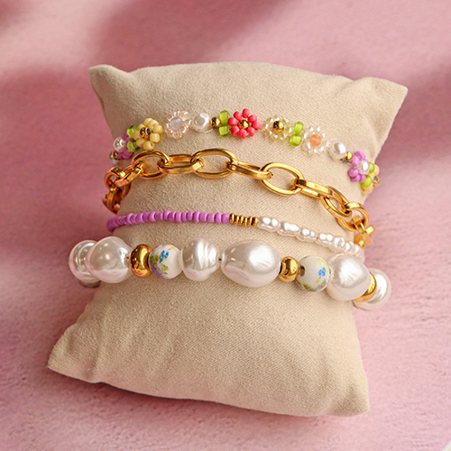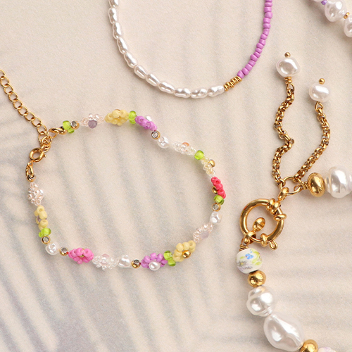 With this collection of imitation freshwater pearls you can create the most beautiful bracelets and ankle bracelets. To create a bracelet or ankle bracelet, alternate the pearls with stainless steel beads and ceramic beads. You can also create flowers with glass seed beads or Presiosa glass seed beads and nylon cord and combine these with the pearls. If you want to learn how to create these kinds of flowers, you can take a look at the DIY tutorial How to make a daisy chain on our Inspiration page.