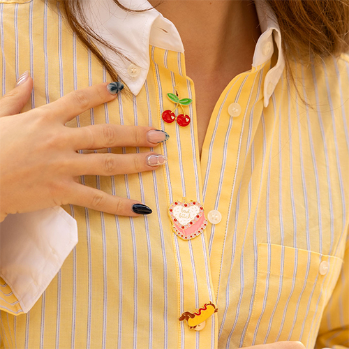 This new pin collection bursts with colour and character! Think cheerful tulips, roses, cherries, cute hearts, and much more—perfect for jazzing up your outfit or bag. It's an absolute must-have for your summer collection!