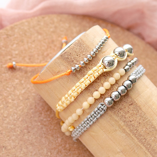 These cheerful, yet minimalist bracelets are on trend! Together with these cute earrings it looks absolutely amazing. We’ve made this jewellery with our new golden and silver stainless steel jewellery findings. We also used faceted beads, Miyuki beads, chip stone beads and fresh water pearls, all in perfect trend colours. Putting these items together in one jewellery set causes tropical vibes.