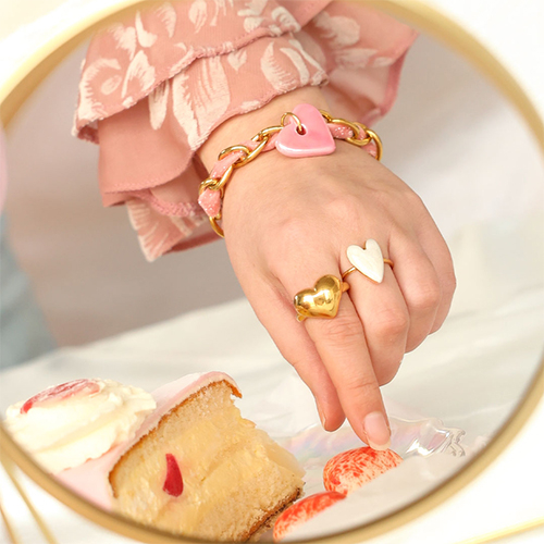 Stainless steel rings enamel heart Pearl Light Pink-Gold