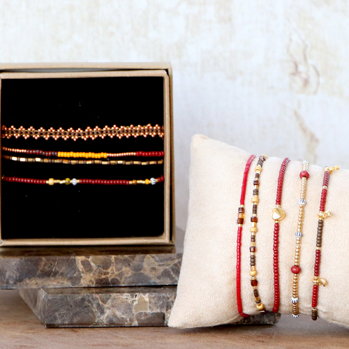 Do you like stylish minimalistic jewellery? Then this inspiration is perfect for you! This time we started working with the new collection of Miyuki beads. Because they are so small in size, they are perfect for making fine jewellery. The Miyuki beads can be easily threaded into nicest patterns. Therefore you can use Miyuki beading cord, Beadalon stringing material or elastic cord. It is fun to alternate the different colours of Miyuki beads and to play with the different sizes. Of course you can also combine them with other beads like the Preciosa beads or top faceted cube beads. The nice thing about these fine bracelets is that you can wear more than one at the same time. Mix and match them with the same colour shades so it becomes a trendy set that matches perfectly!