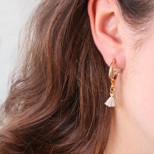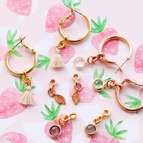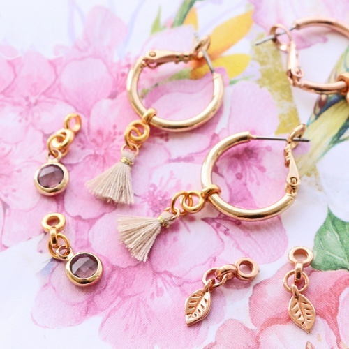 These earrings always fit! You can easily adjust them to your mood or occasion. The only thing you need to do is create a few super cute pendants to attach to your earring. We did this with crystal glass charms for a chic look. Tassels for a festival boho look and DQ metal charms for an everyday look! Are you as much into this as we are?