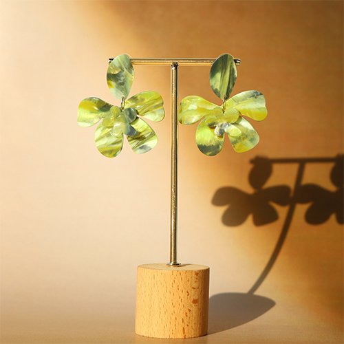 Trendy resin earrings / earpins flower Multicolour Green